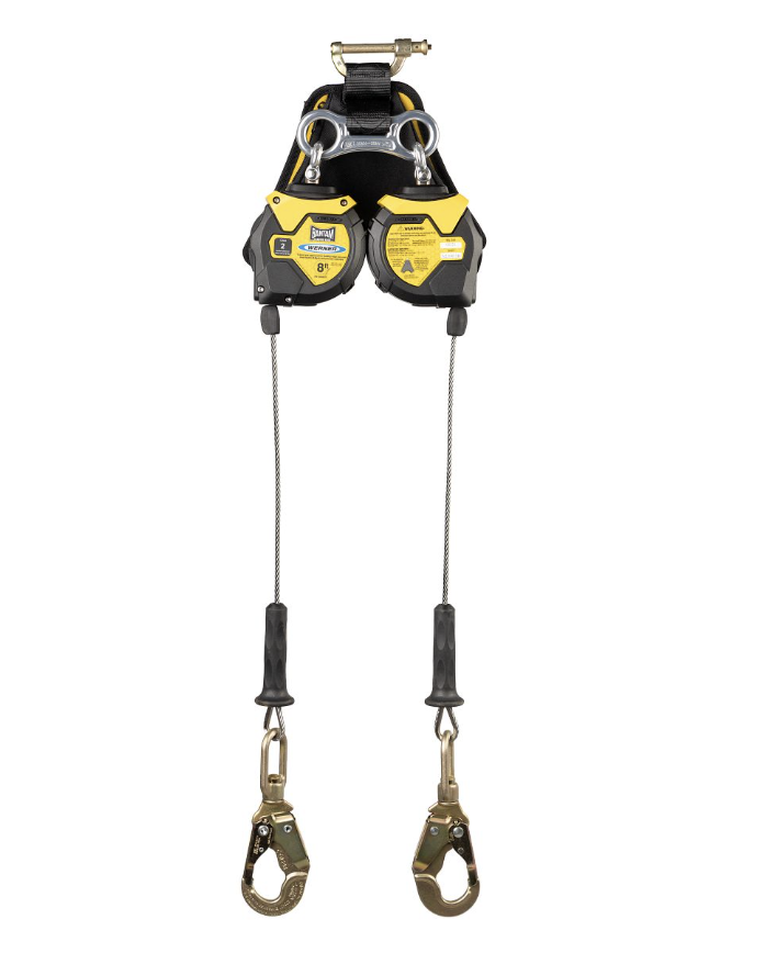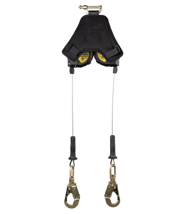 The R413008LE 8-foot Bantam Twin Leg Leading Edge Self-Retracting Lifeline is a Class 2 device approved for use in leading edge applications. With a lightweight and compact design, the R413008LE has 8 feet of 3⁄16-inch galvanized steel cable, a thermoplastic housing, and includes an ultra-lightweight and compact Backpack Style Energy Absorber. The steel harness web connector allows for quick and easy attachment. When attached overhead, the Bantam has a 24-inch maximum arrest distance ideal for low clearance applications.