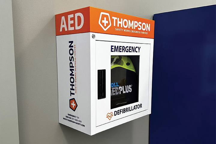 AED cabinet, designed to securely store life-saving equipment.