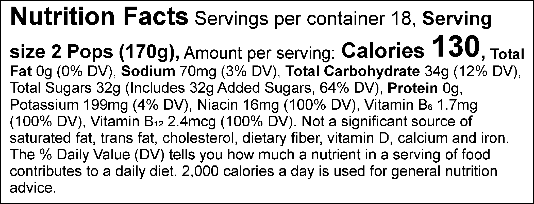 - FOUR 36-COUNT POLY BAGS (144 – 3 OZ POPS PER BOX)