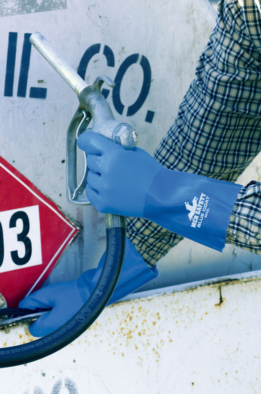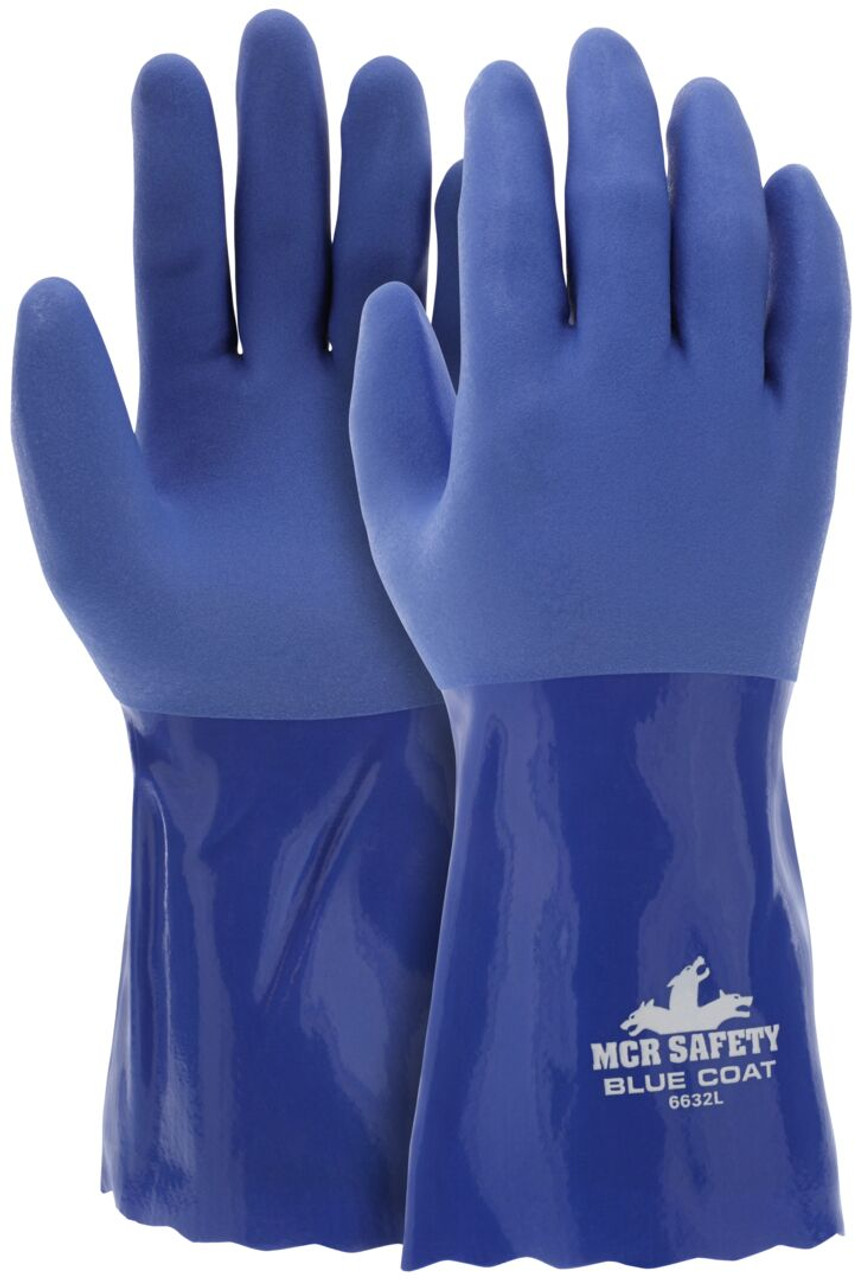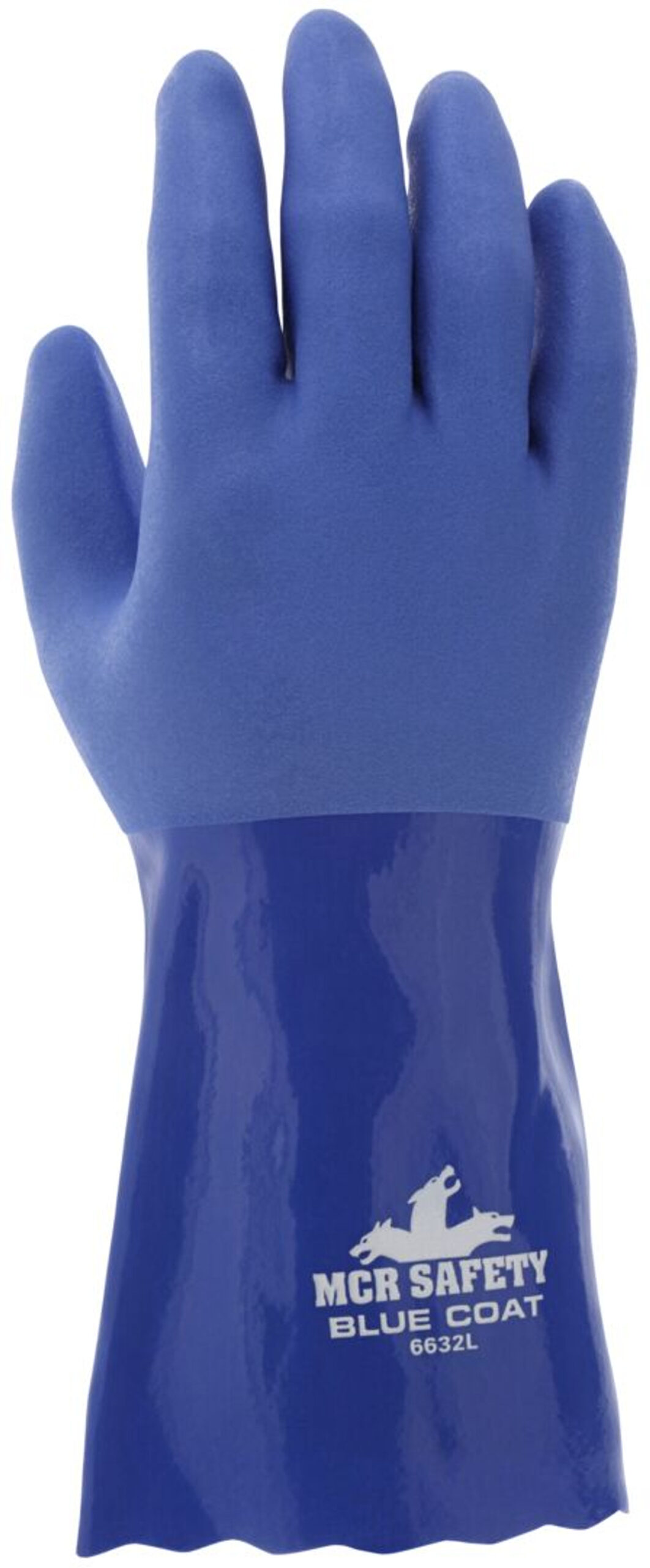 The Blue Coat® 6632 gloves provide three layers of rugged PVC on a seamless and flexible knit liner. The PVC coating has a textured finish, providing better grip than non-textured options. This glove is treated with ActiFresh® to prevent odors and eliminate bacteria caused by perspiration. Compared to similar styles of PVC gloves, the 6632 Blue Coat® option provides better dexterity because of its flexibility – making it a more comfortable option to wear when you need the protection of PVC.