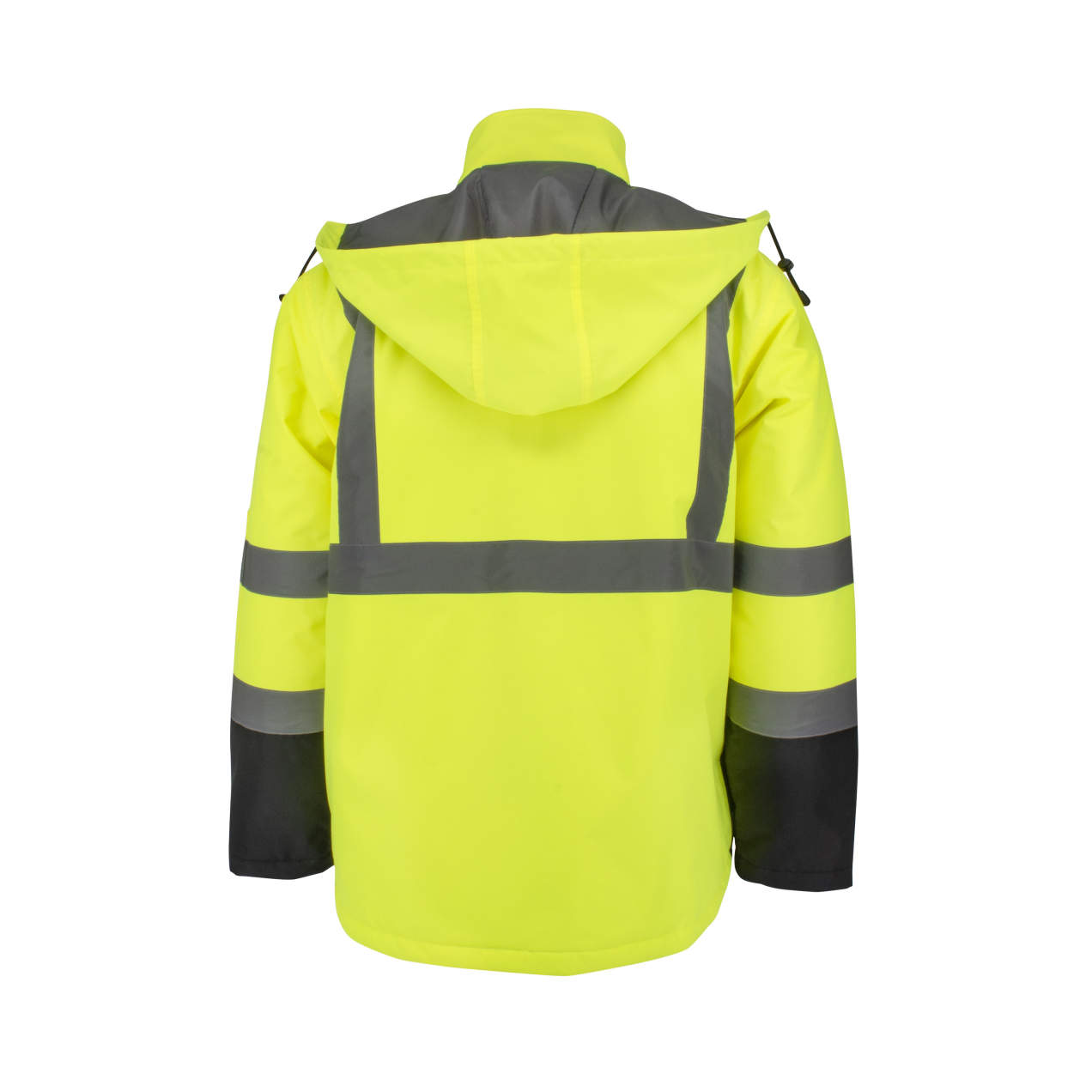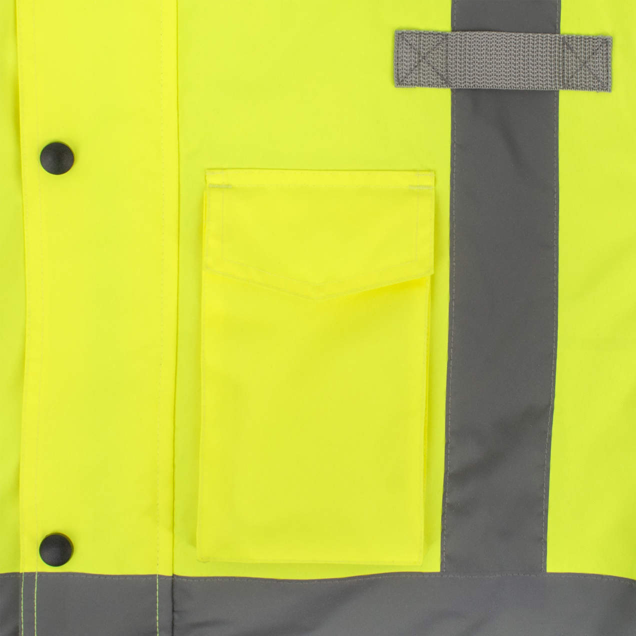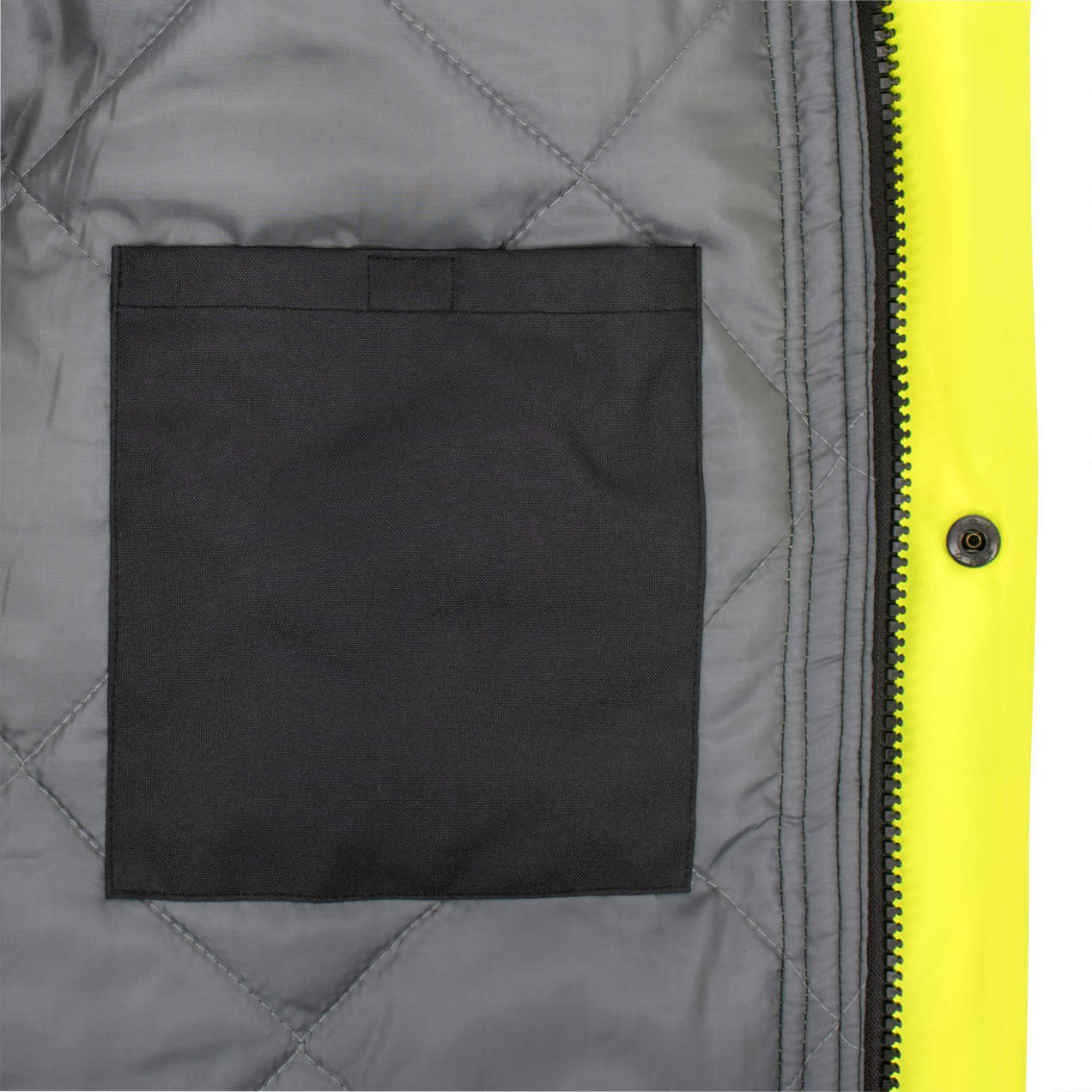 The SJ411QB Class 3 Economy Parka with Quilted Lining features a PU coated polyester weatherproof outer shell for protection against the cold, snow, wind, and rain. Equipped with a zipper front and storm flap, this parka provides an added barrier against the wind and the elements. Stay organized with multiple pockets that securely hold your essentials, as well as two zippered fleece-lined slash pockets that will also keep your hands warm. For added protection and convenience, it features an ETP snap closure collar with an attached and concealable hood, allowing you to adapt to varying weather conditions.
