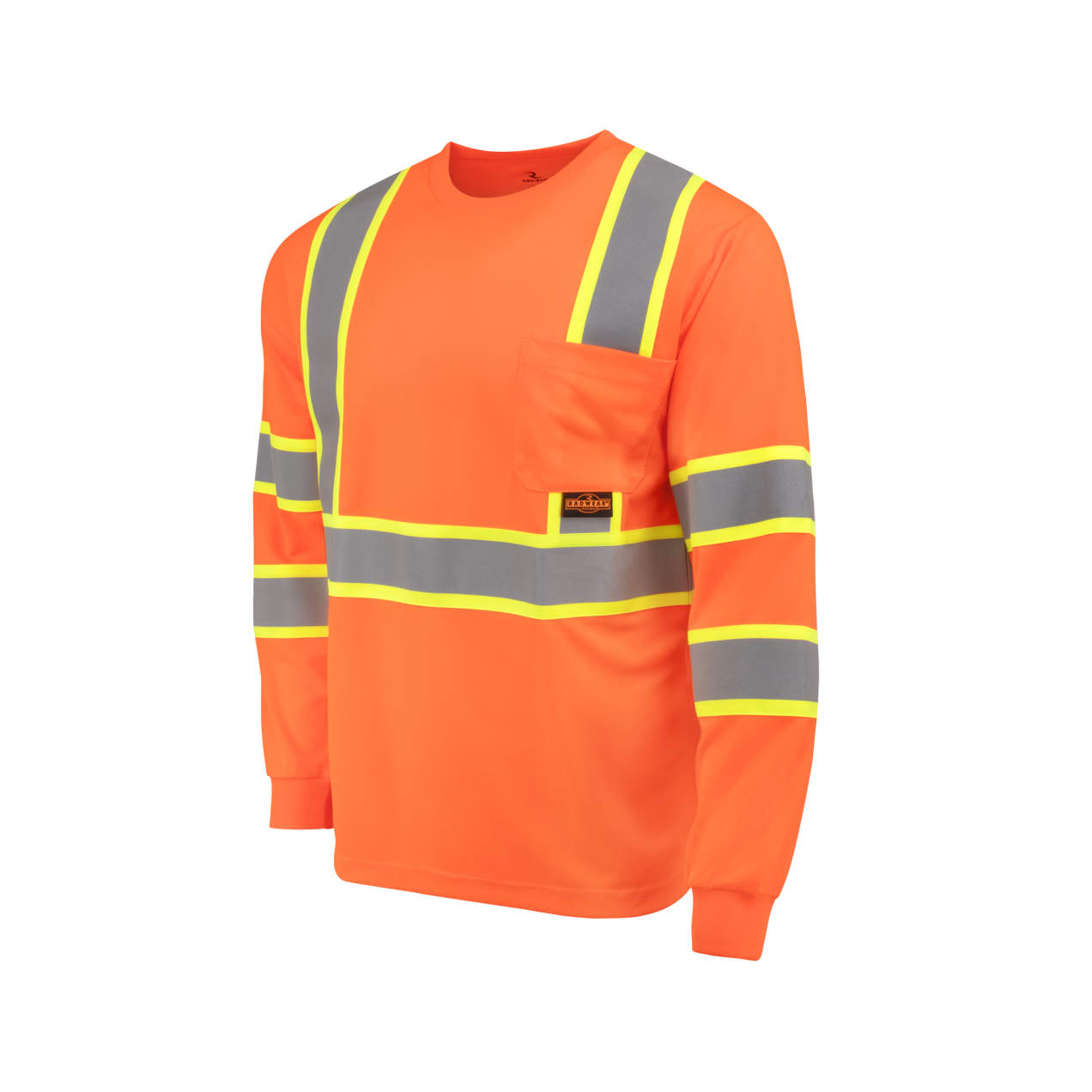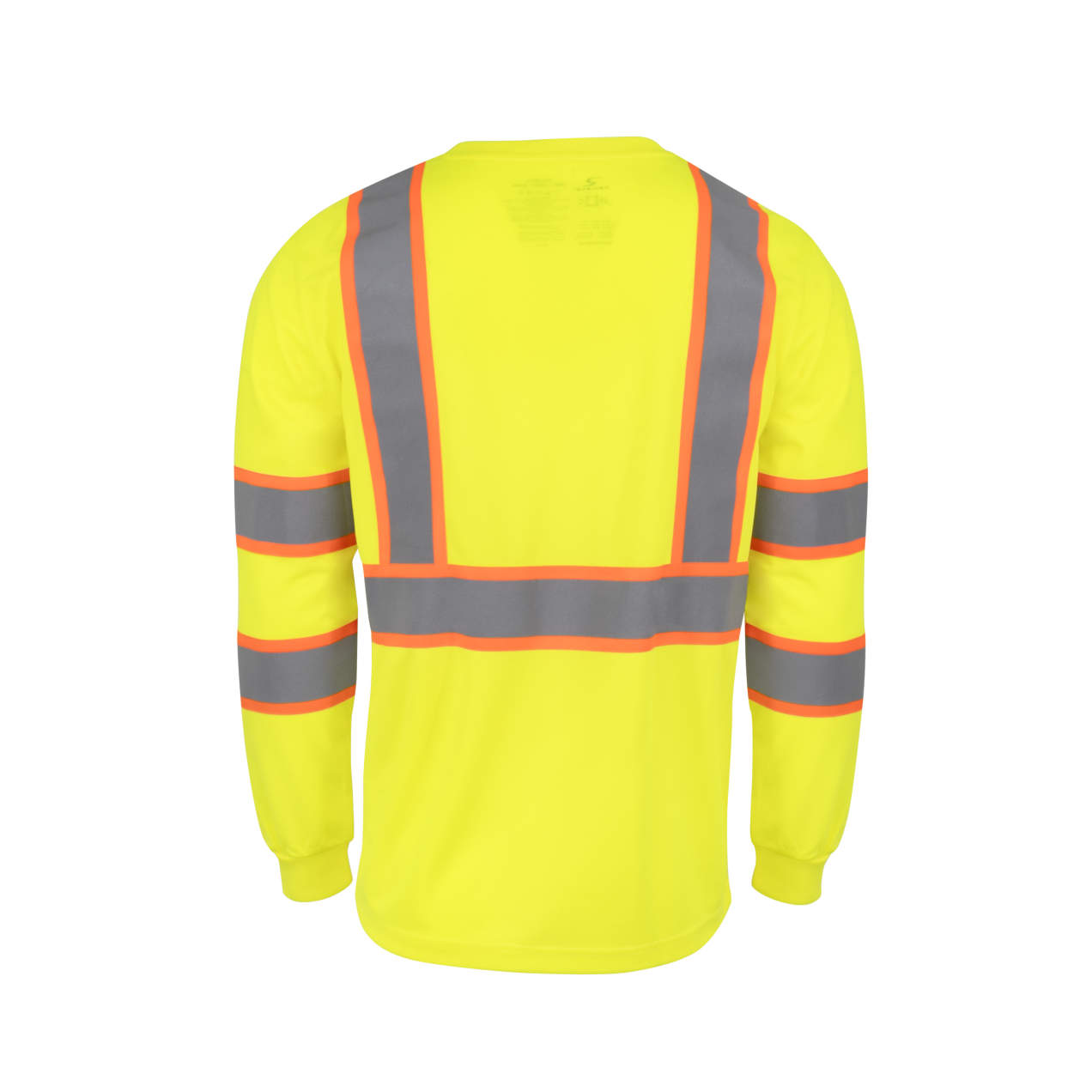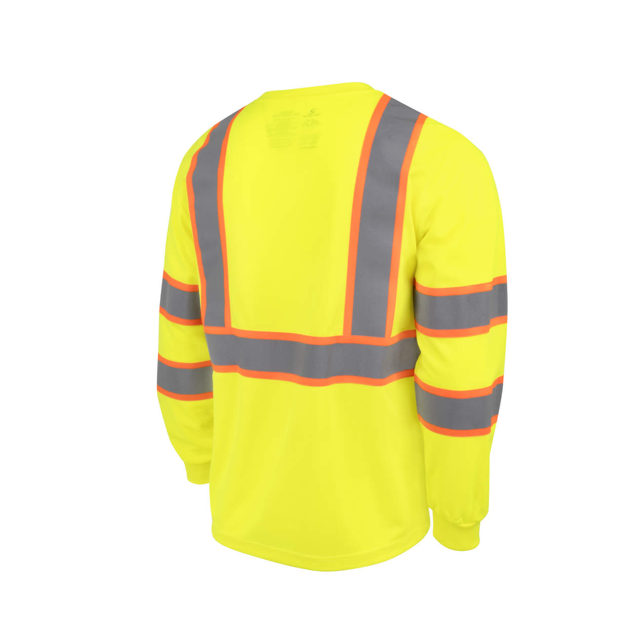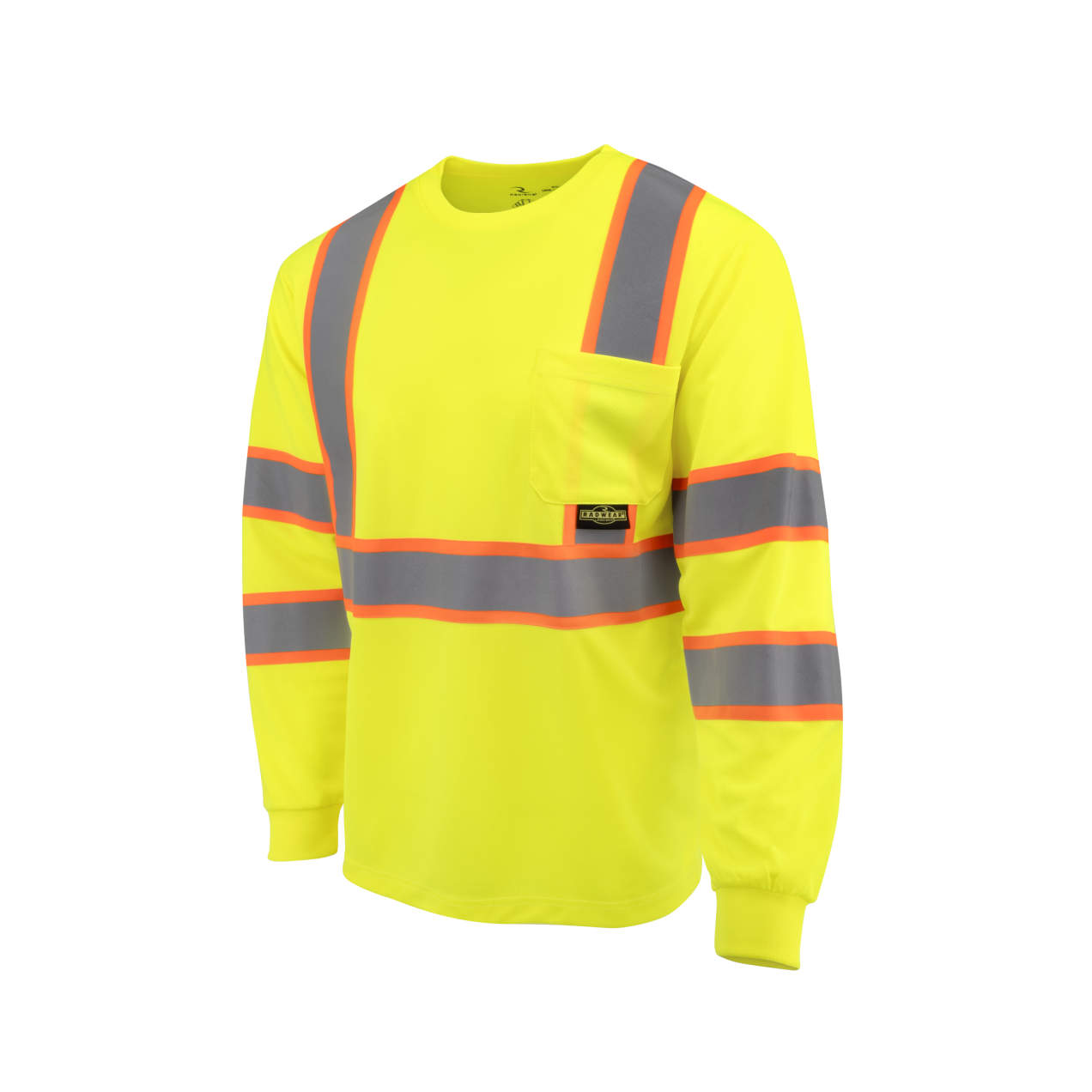 The Radians ST41-3 hi-vis long sleeve Class 3 mesh T-shirt with contrast trim helps workers stand out at job sites with complex or changing backgrounds, like roadways under construction or in heavy traffic. Long sleeves and the Class 3 rating also provide extra visibility and arm protection from the sun and elements. Engineered with Max-Dri™ moisture wicking mesh technology, workers stay cool, dry, and comfortable in a soft but durable T-shirt that meets the ANSI/ISEA 107-2020 high-visibility standards.