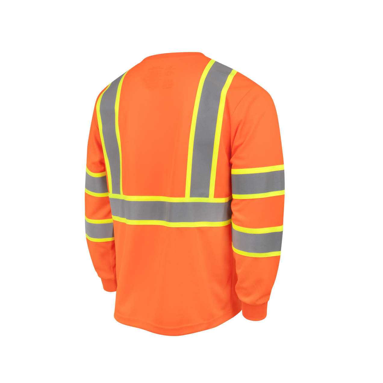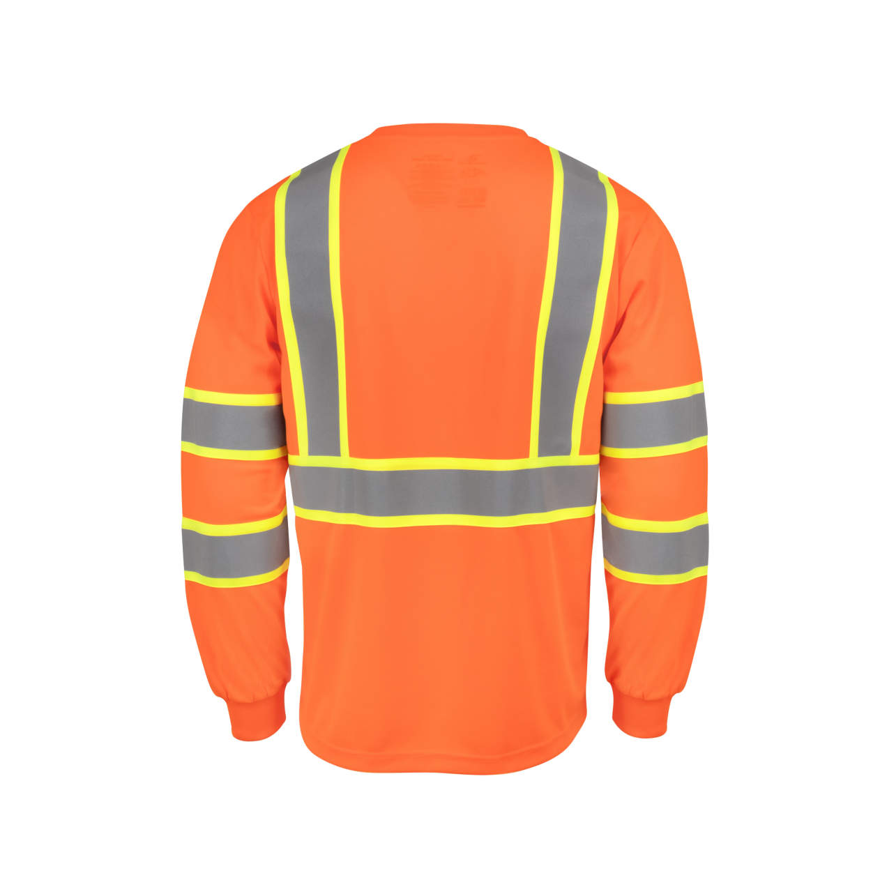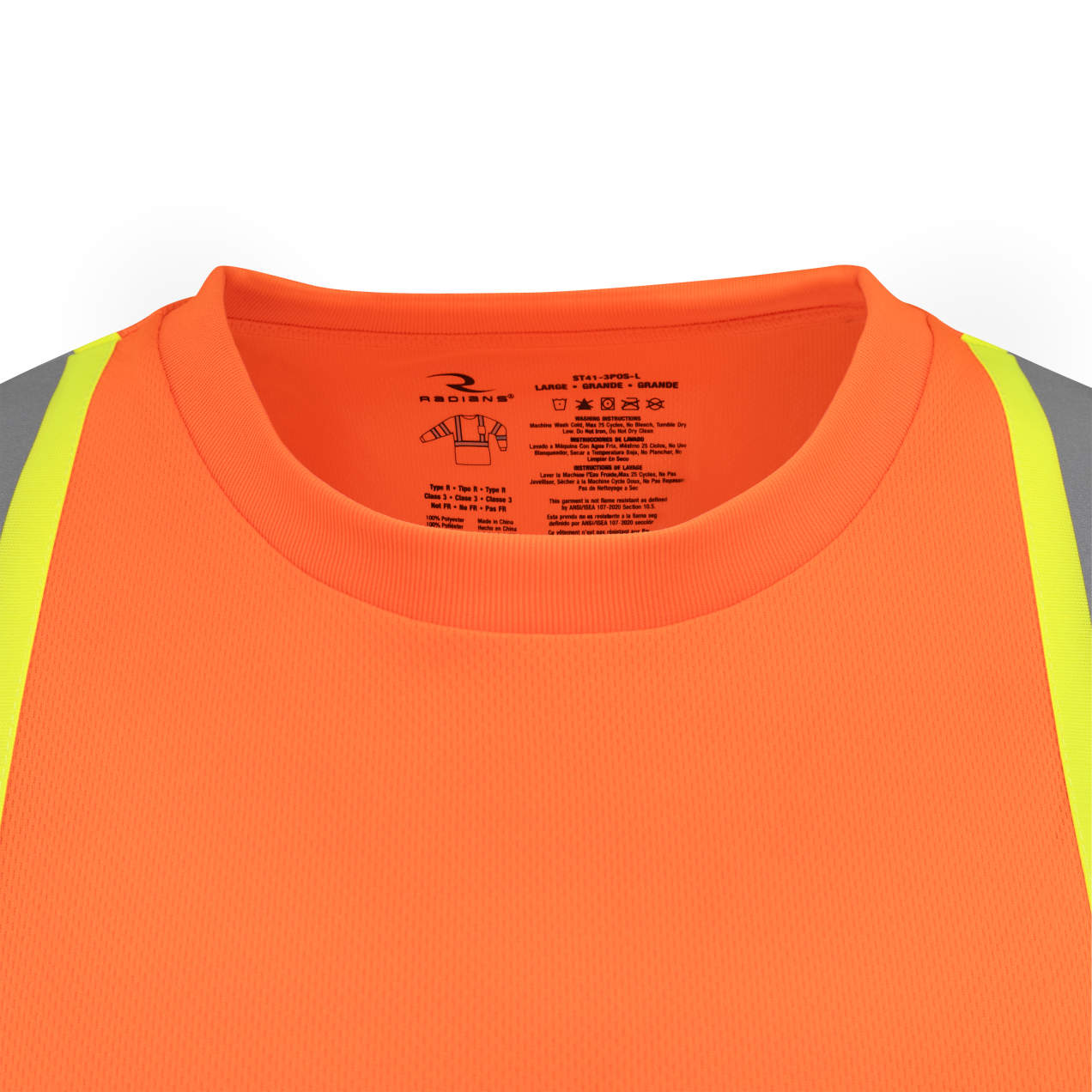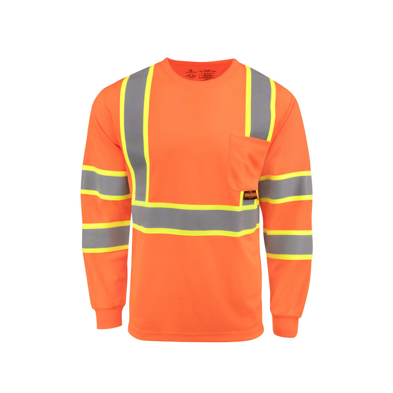 The Radians ST41-3 hi-vis long sleeve Class 3 mesh T-shirt with contrast trim helps workers stand out at job sites with complex or changing backgrounds, like roadways under construction or in heavy traffic. Long sleeves and the Class 3 rating also provide extra visibility and arm protection from the sun and elements. Engineered with Max-Dri™ moisture wicking mesh technology, workers stay cool, dry, and comfortable in a soft but durable T-shirt that meets the ANSI/ISEA 107-2020 high-visibility standards.