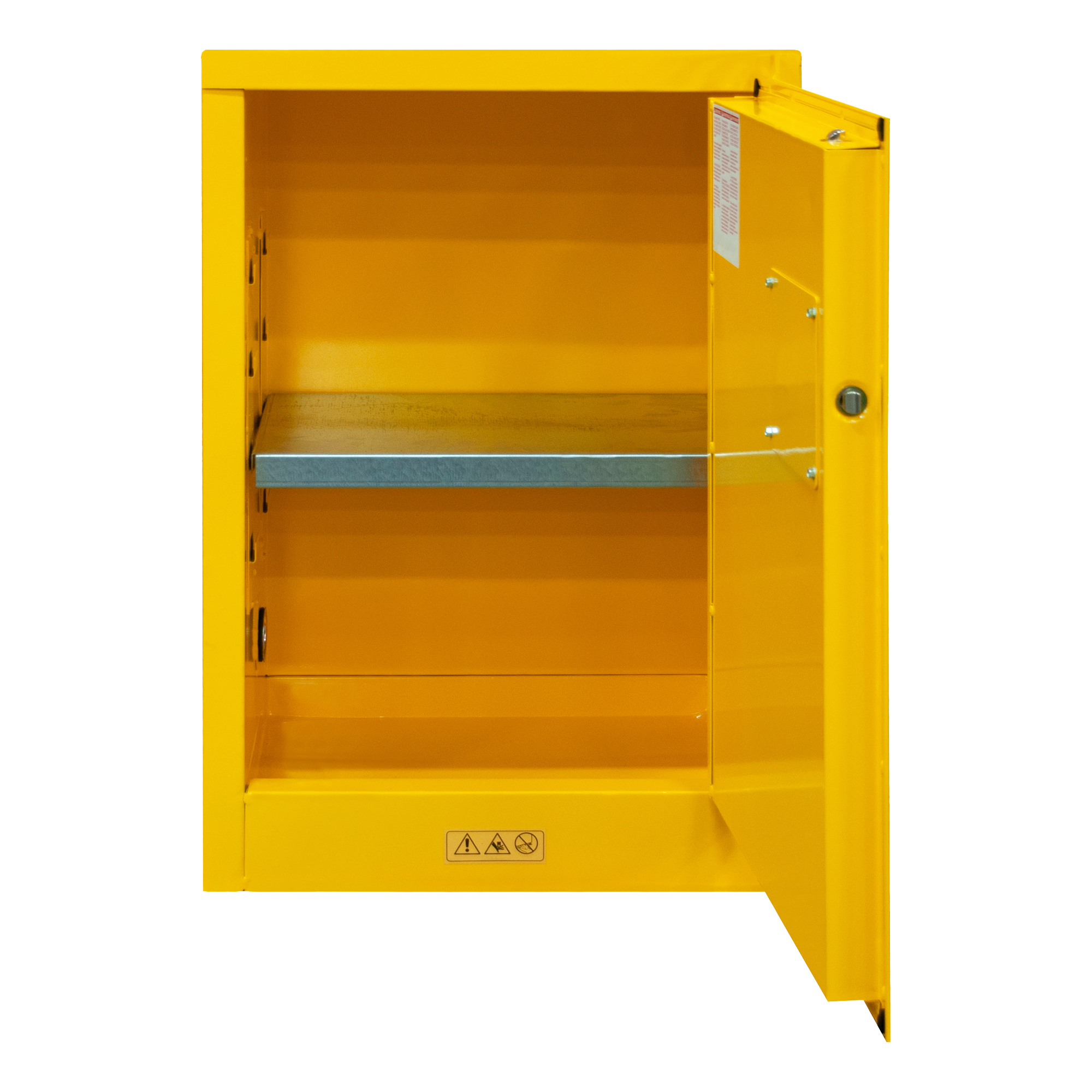 FM Approved, Flammable Storage Cabinet, 12 Gallon, 1 Door, Manual Close, 1 Shelf, Safety Yellow.