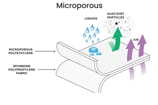 • 60gsm Microporous Film over Spunbonded Polypropylene