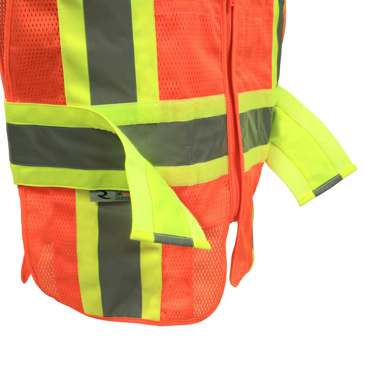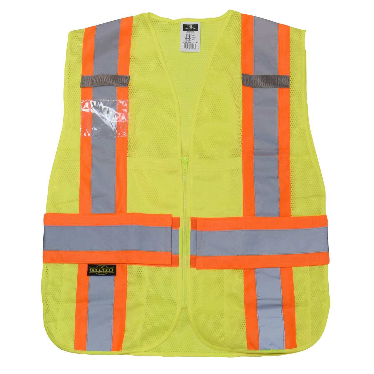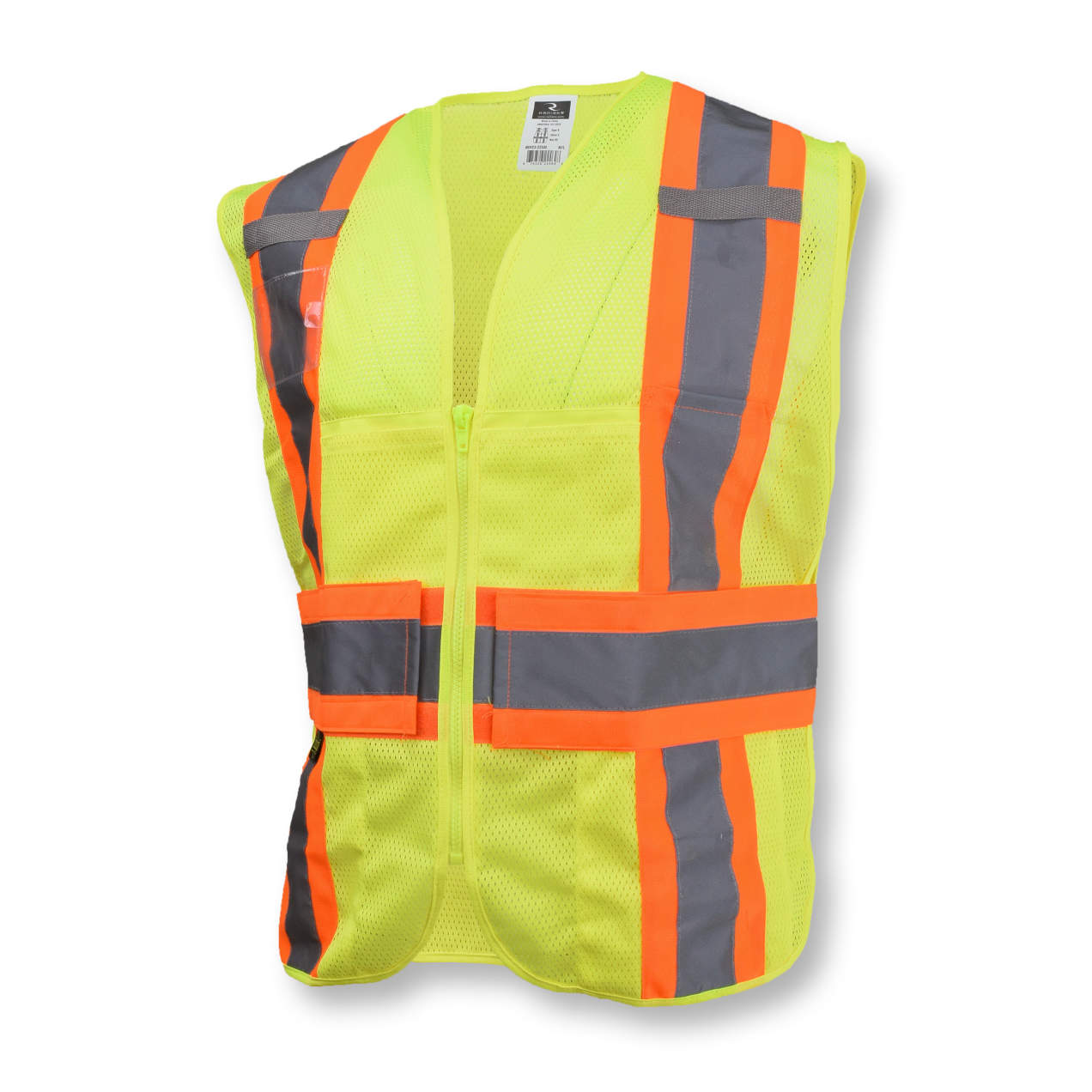 Radians SV23-2 Type R Class 2 Expandable Two Tone Safety Vest has an expandable waist with adjustable sides for a comfortable fit. Multiple pockets for organization and mic tabs on both shoulders. Contrasting trim detail for higher visibility.