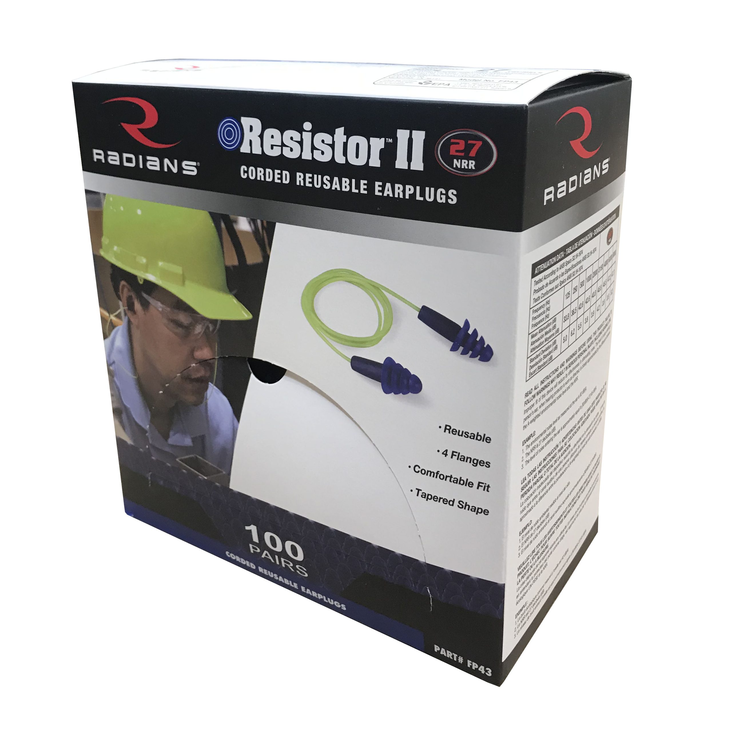 Tested to ANSI S3.19-1974 standards, this dielectric earplug has an NRR of 27. Its tapered design and sturdy stem allow for easy insertion and removal and a comfortable fit in the ear canal. Made from soft thermoplastic rubber (TPR), the FP42 and 43 are non-irritating to the skin. They are available uncorded (200 Box) and corded (100 Box) and in case quantities.