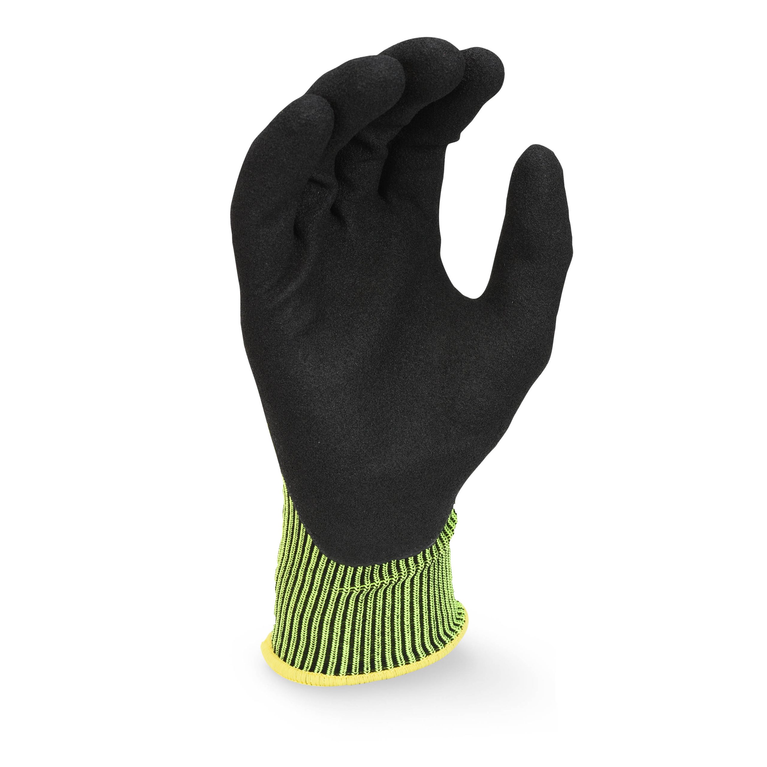 The Radians RWG31 FDG Coating High Visibility Work Glove has a double dipped FDG coating which is a water-resistant coating with excellent grip in wet/oily conditions and excellent abrasion resistance with a 15 ga hi-vis green nylon/spandex shell.