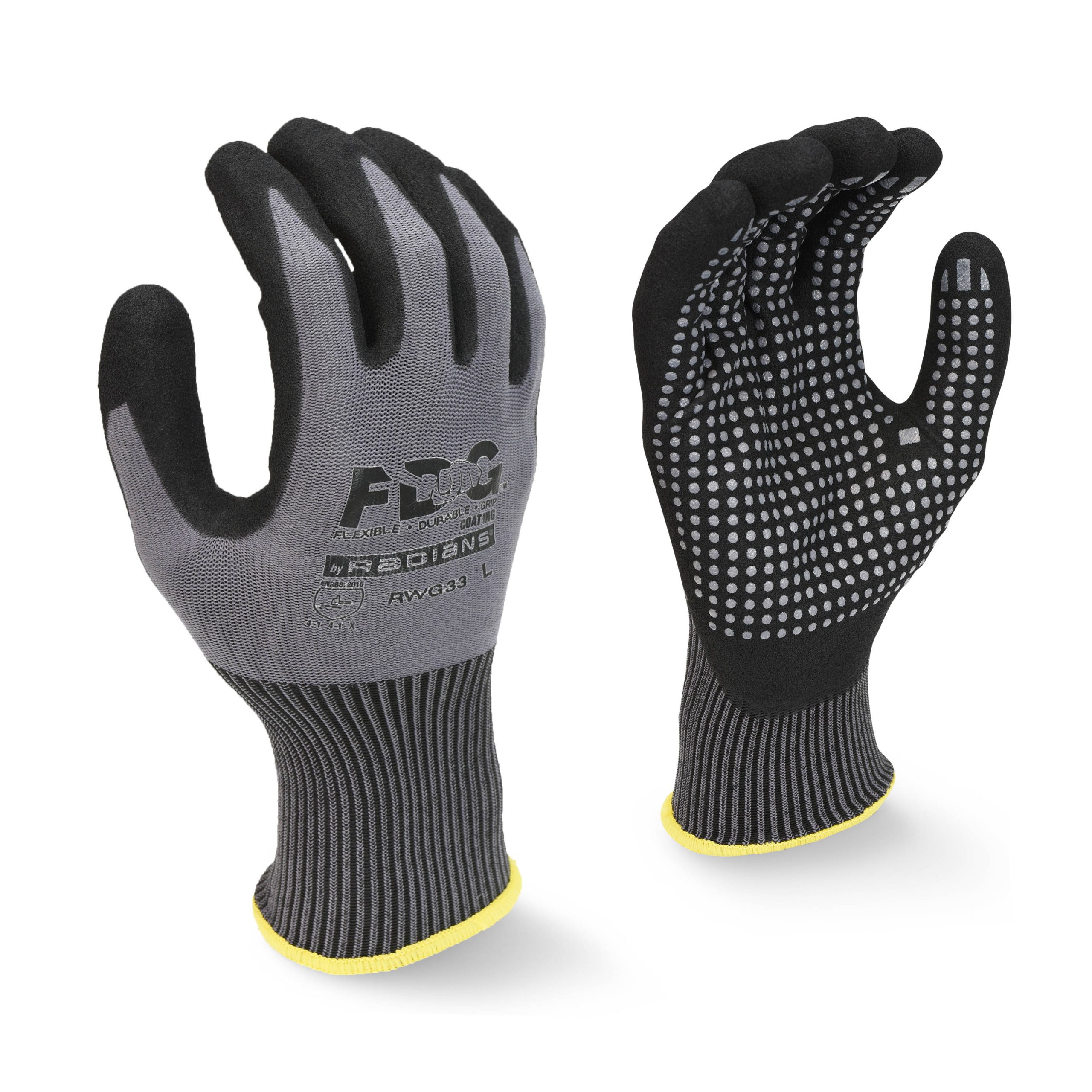 Radians RWG33 FDG Palm Coating with Nitrile Dots Work Glove has Nitrile Dots on Palm for Added Abrasion Protection with a 13 Ga Nylon shell