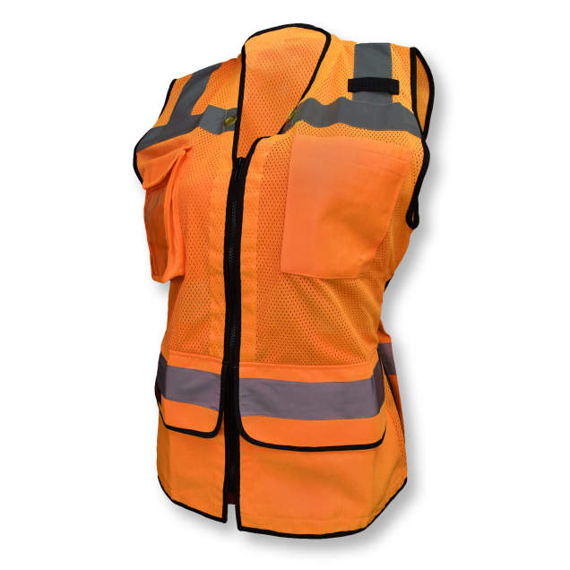 The SV59W ladies vest is a Type R, Class 2 vest that is made to fit and made to last. It features a zipper closure, a large back “plan” pocket, reinforced wear points, and long-wearing web reinforcement along outer edges. Use the cinch located inside the back plan pocket to customize fit. The mesh upper front and back provide breathability and comfort while the tough woven twill fabric used for the pockets enhances durability.