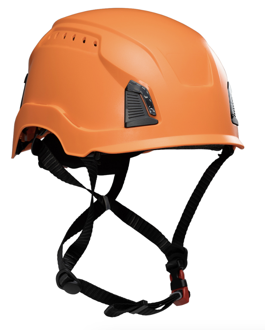 Vented, Industrial Climbing Helmet, Type II, Non-MIPS, ABS Shell, EPS Liner, HDPE Suspension, Wheel Ratchet Adjustment, with 4-Point Chin Strap